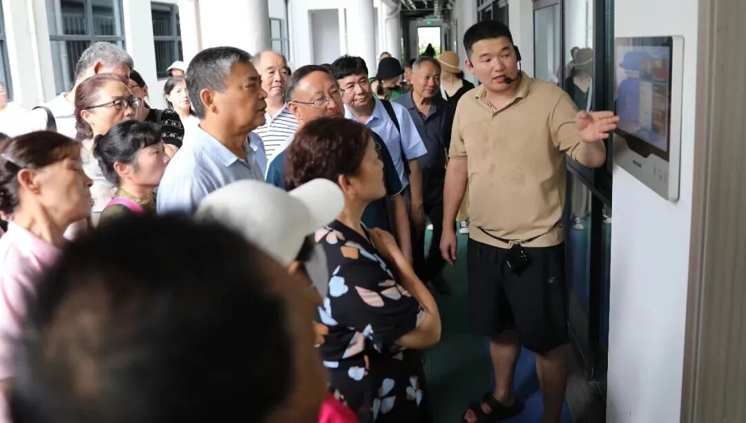 在淮安市老年大学校领导的陪同下,长丰县老年大学的嘉宾们欣赏了颐园、和园两个园林景观;参观了弘艺楼、汇文大厅、解香楼等教学场所;走进录播教室、掼蛋教室、烹饪教室,了解教室智能设施的配备情况,听取了电子班牌的功能讲解。在汇文大厅,观看了《守正创新、勇毅前行》和《老年教育新天地》两部展现淮安市老年大学发展历程与教学成果的宣传片。